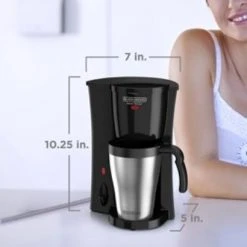 The BLACK+DECKER™ Brew ‘n Go™ Personal Coffeemaker is ideal for an active, on-the-go lifestyle! Your coffee brews directly into a 15-oz. stainless steel thermal mug that fits most car cup holders. The permanent grounds filter is compatible with coffee grounds and pre-packaged soft pods, and it’s easy to rinse clean in the sink. One-touch operation quickly delivers the morning coffee you need, with a compact design that’s perfect for small kitchens, apartments, and dorm rooms.