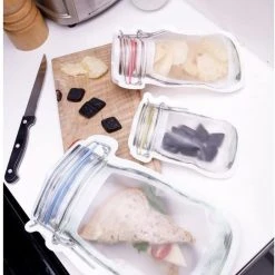 No need for heavy jars with these brilliant reusable zip closed storage bags. Clever design allows bags to stand when filled. Dishwasher safe, durable & leak proof.