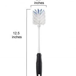 Our Bottle Brush features a bristle head designed for gentle wiping as well as serious scrubbing. The long, durable neck easily reaches inside bottles, pitchers and carafes. The Bottle Brush has a soft, non-slip grip, even when wet. Safe for stemware, baby bottles and other delicate containers.